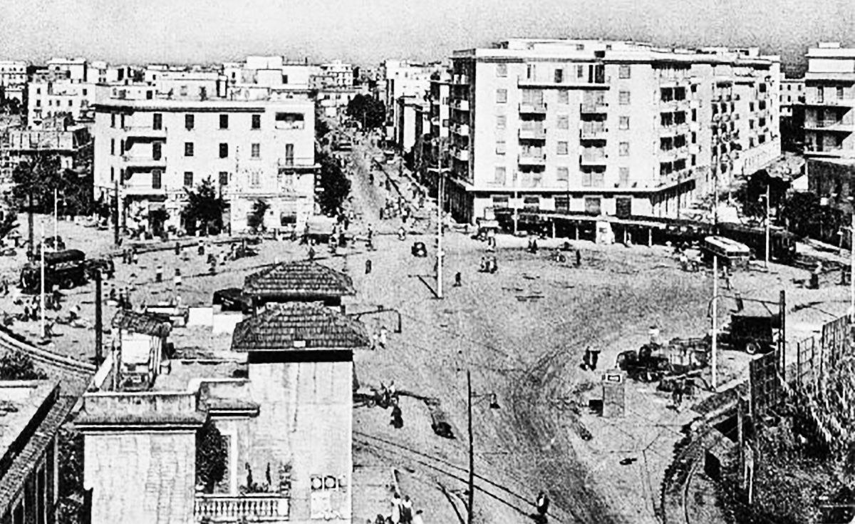 Un'immagine aerea del 1920 che racconta la storia del quartiere senza la diramazione del tram a piazza dei Mirti, che appare già esistente ma senza palazzi intorno. Non ci sono ancora i villini costruiti dall’aeronautica per gli ufficiali dell’aeroporto e poi dalle cooperative di ferrovieri Stefer tra gli anni 20 e 30. Sulla sinistra si vede la marrana che scorreva sul tracciato dell’attuale via Palmiro Togliatti. L’acquedotto non ha ancora gli archi più ampi costruiti per far passare la strada.