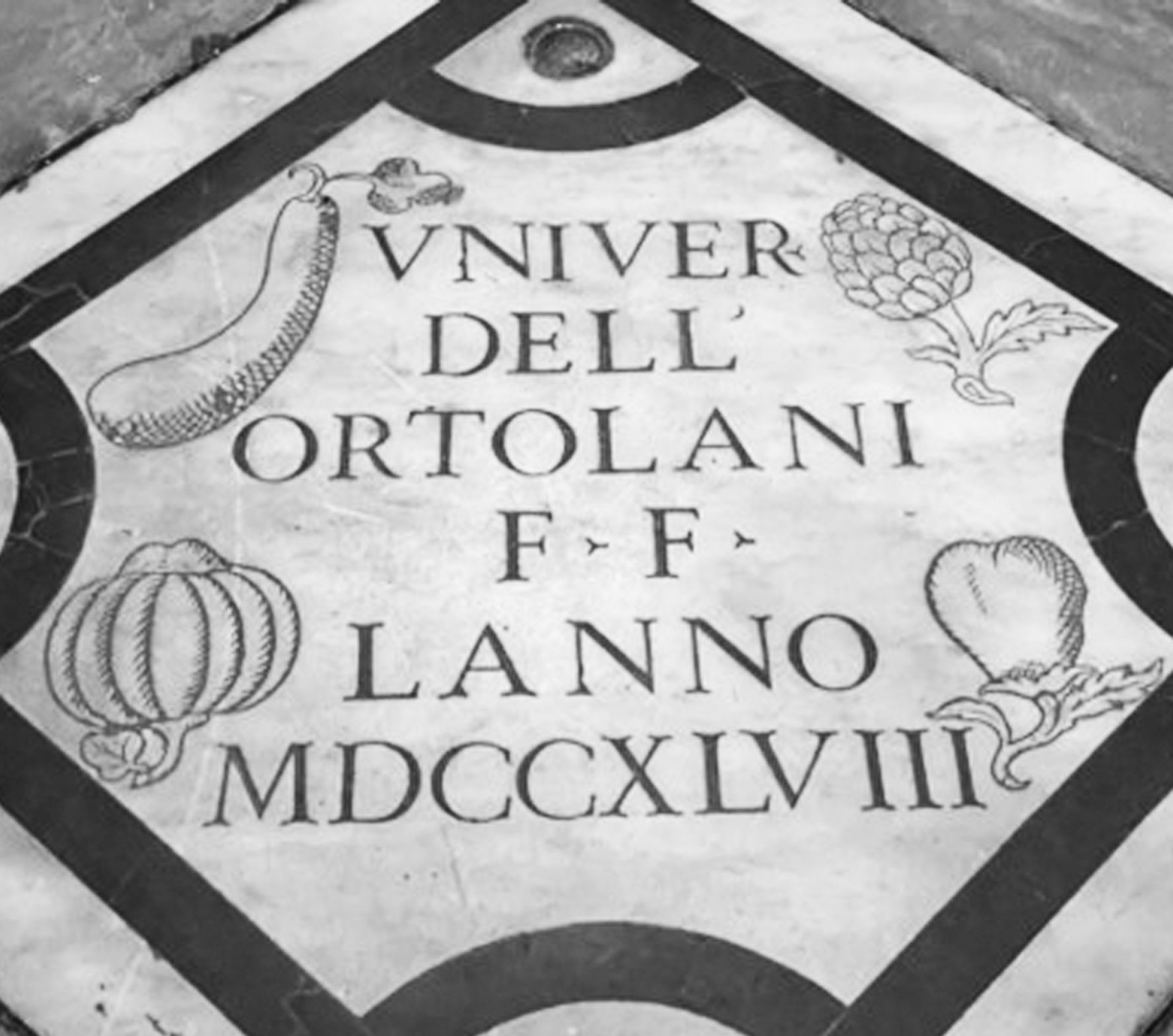 "Decollazione" di San Giovanni Battista. Vi è poi l'altare degli ortolani dedicato a San Sebastiano, arricchito da affreschi e decorazioni. Mentre altre università dei mestieri sono rappresentate più modestamente da caratteristiche iscrizioni. Inoltre in direzione della sacrestia alzando gli occhi è possibile ammirare uno splendido soffitto a cassettoni decorato da affreschi rinascimentali e contornato da alcuni simboli delle università dei mestieri tra cui l'originale tavola in legno della corporazione dei pollaroli in cui è riprodotto un tacchino che fa la ruota. Spesso successe che i bottegai per magnificare il proprio prestigio esponessero delle lapidi autocommemorative, utilizzando così il tempo per le loro ..."inserzioni pubblicitarie dei tempi che furono".