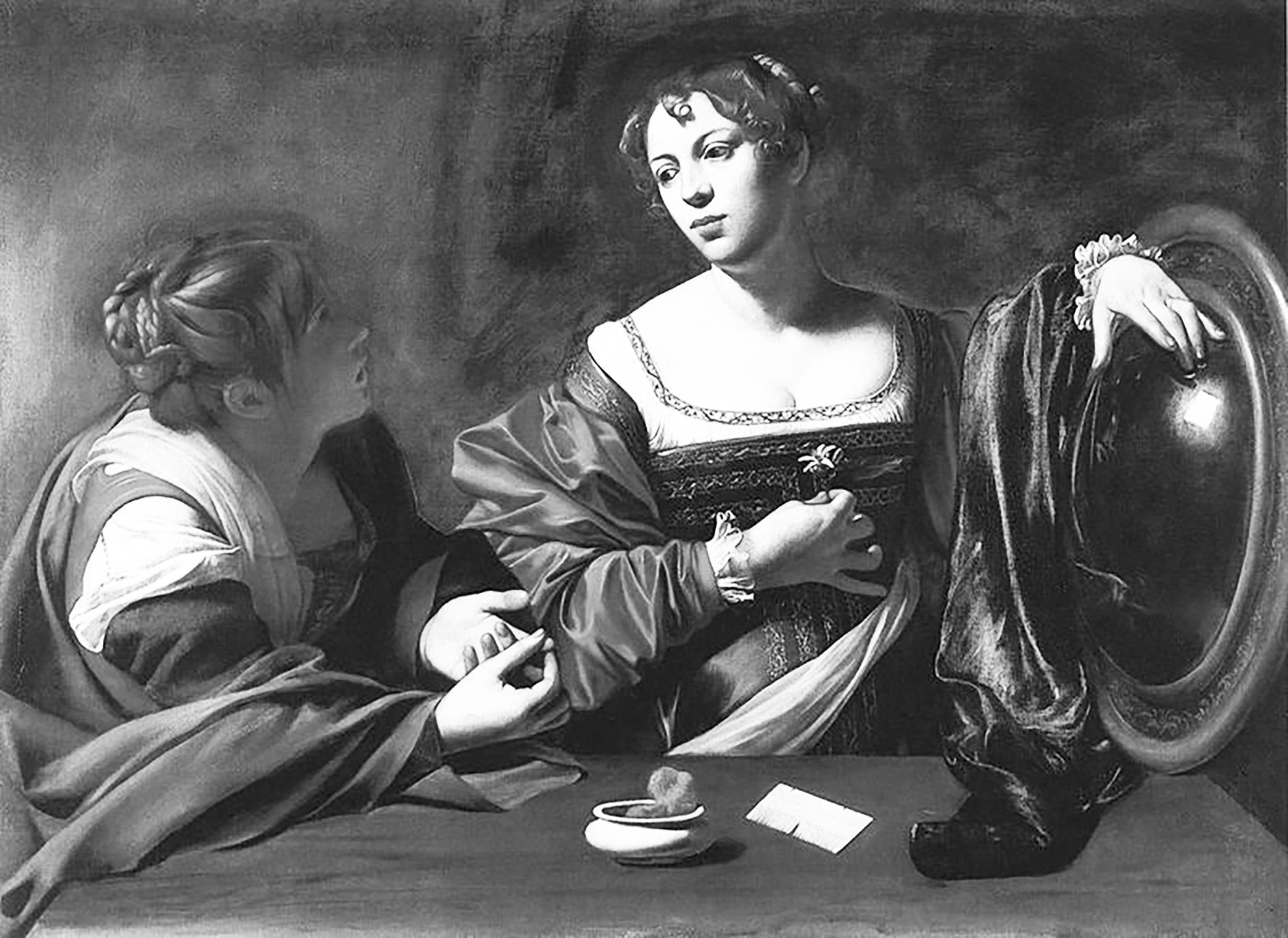 Il fattaccio avvenne domenica 28 maggio 1606 nel cuore di Campo Marzio tra via di Pallacorda e via dei Prefetti, il turbolento Caravaggio non aveva ancora compiuto venticinque anni. Quella sera Merisi uccise in duello un certo Ranuccio Tomassoni, si dice per futili contese al gioco della pallacorda, ma molto più presumibilmente per contrasti d'onore. Il rissoso artista aveva avuto già in precedenza discussioni col Tomassoni spesso sfociate in risse. Anche questa volta c'era di mezzo una donna, la bella prostituta Fillide Melandroni una delle donne più ricercate di Roma che dimorava e "praticava la professione di meretrice" in una casa all'Ortaccio di Campomarzio, la contrada dell’amore mercenario. Fillide era anche solita prestarsi come modella agli artisti. Era una delle preferite dal prodigioso pittore venuto dal nord. La sua figura appare in diverse opere tra cui "Santa Caterina d'Alessandria", Marta e Maria Maddalena", "Giuditta e Oloferne" e "Ritratto di cortigiana".