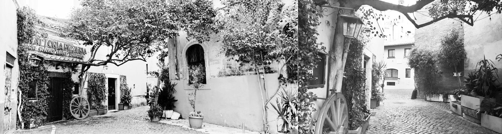 Sul retro dell'abside della Chiesa di Santa Maria della Luce nel cuore di Trastevere, il vicolo del Buco collega via della Luce a piazza del Drago. Lastricato di sampietrini scorre tra edifici ricoperti d'edera e antichi palazzetti dai toni caldi, in un'atmosfera unica e senza tempo. Al civico 2 c'è l'antica osteria "La Villetta da Gino" che non è semplicemente un tuffo nel cibo e nei sapori della più tradizionale cucina romana, ma è soprattutto un tuffo nei ricordi di una Roma sparita, rappresentata dai personaggi del bel dipinto murale realizzato nella metà dello scorso secolo da un'artista di strada berlinese su una parete in fondo alla grande sala interna.