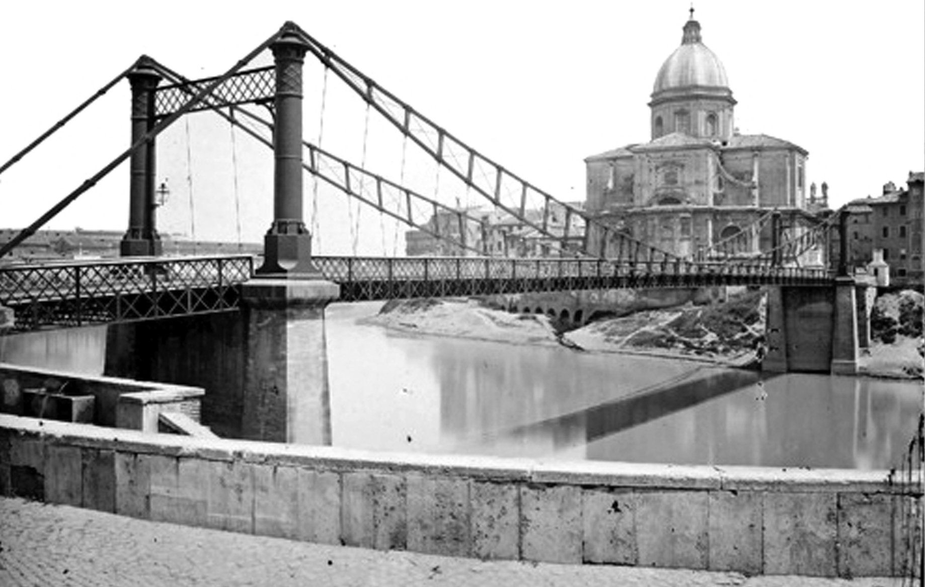 Era il ponte dei Fiorentini, smantellato nel 1941, sostituito dall'attuale ponte Principe Amedeo. Era situato all’altezza della chiesa di S.Giovanni dei Fiorentini. Quale compenso e pagamento per le spese di edificazione, il governo pontificio concesse ai costruttori il diritto di pedaggio a tariffa unica stabilita in cinque centesimi, un “soldo” per un periodo di 99 anni. Nel 1941smantellato e venne sostituito dal "Ponte Principe Amedeo"...