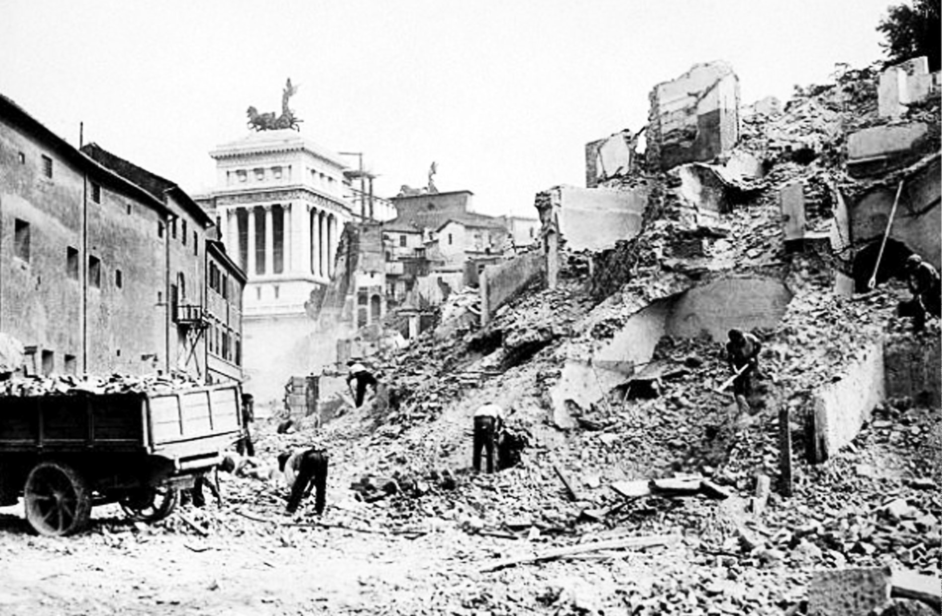 Una via per collegare il centro di Roma a Ostia: siamo tra gli anni ’20 e gli anni ’30 del ‘900. Benito Mussolini vuole collegare Piazza Venezia a Via Ostiense e di conseguenza al mare, ma per farlo ha bisogno di liberare Via Tor de’ Specchi (l’attuale Via del Teatro Marcello) da chiese ed edifici medievali e seicenteschi. Tutti abbattuti per creare la via del Mare ...