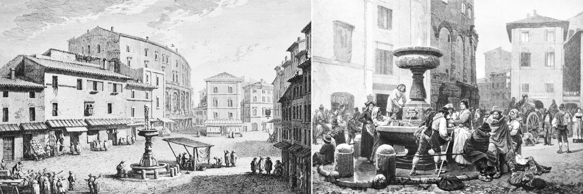 Era una piazzetta di quelle amate ed un po' osteggiate da Goethe e Stendhal, vi transitava gente dalle campagne dell’agro romano e colline circostanti: fattori, i capoccia, i bifolchi, i massari, i caporali, tutta la gerarchia insomma dei mondi bucolici alle porte della città eterna che sin dalle primissime ore del mattino vi si affollavano per offrire la loro manodopera per lavori di bracciantato. Inoltre, data la scarsa alfabetizzazione di quei lavoratori, era anche un luogo molto frequentato da scrivani che prestavano la loro opera per la scritture di lettere ed altri atti di varia natura.