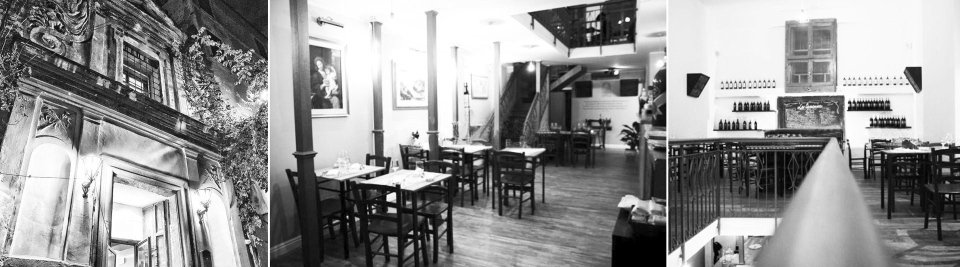 L'antico luogo di culto oggi divenuto ristorante di prelibata cucina romana, gestito dal signor Enzo, conserva alcune originali preziose testimonianze di antica memoria, tra cui l'acquasantiera di marmo ancora incastonata come una volta nella nicchia del muro, e poi la bellissima porta della sacrestia. La scala di ferro battuto porta su verso la volta parzialmente affrescata con l'immagine della Madonna che tiene i mano dei fiori.
