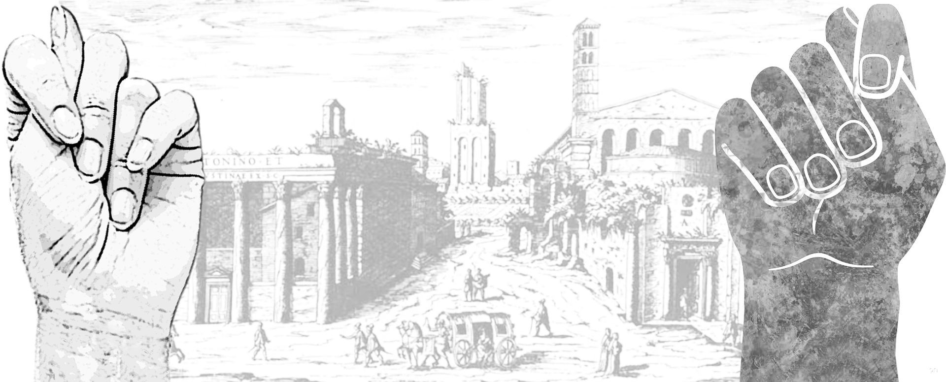 Scopriamo perchè la malasorte a roma si chiama «sfiga». Questa curiosa locuzione dall'apparenza volgare, deriva dall'antichissima tradizione della «manus fica» (mano a fico) un simbolo diretto, arcaico che deriva dall'antica era monarchica che affonda le radici nel linguaggio della fertilità degli antichi popoli dei villaggi pastorizi e agricoli sul colle Palatino, usata come auspicio di fertilità e ricchezza. Gli antichi romani manifestavano l'auspicio di buona sorte con la mano più vicina al cuore, attraverso un segno nel quale si nasconde/va un messaggio molto più profondo di quanto sembri: simula/va infatti l’unione sessuale della fecondazione. Il pollice rappresenta il fallo, mentre le dita che lo racchiudono richiamano l’organo femminile.
